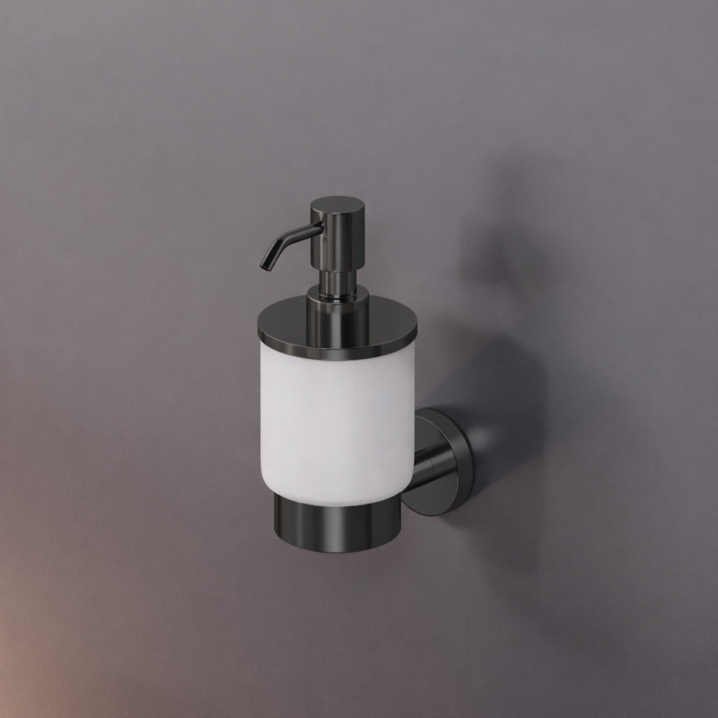 Настенный дозатор для жидкого мыла ROUND в цвете «Графит» (Gun Metal) — это практичность и современный дизайн для вашей ванной комнаты. Изготовленный в Италии, этот аксессуар с лаконичной круглой формой позволяет удобно и гигиенично использовать жидкое мыло, одновременно выступая стильным элементом декора в духе минимализма или хай-тека.