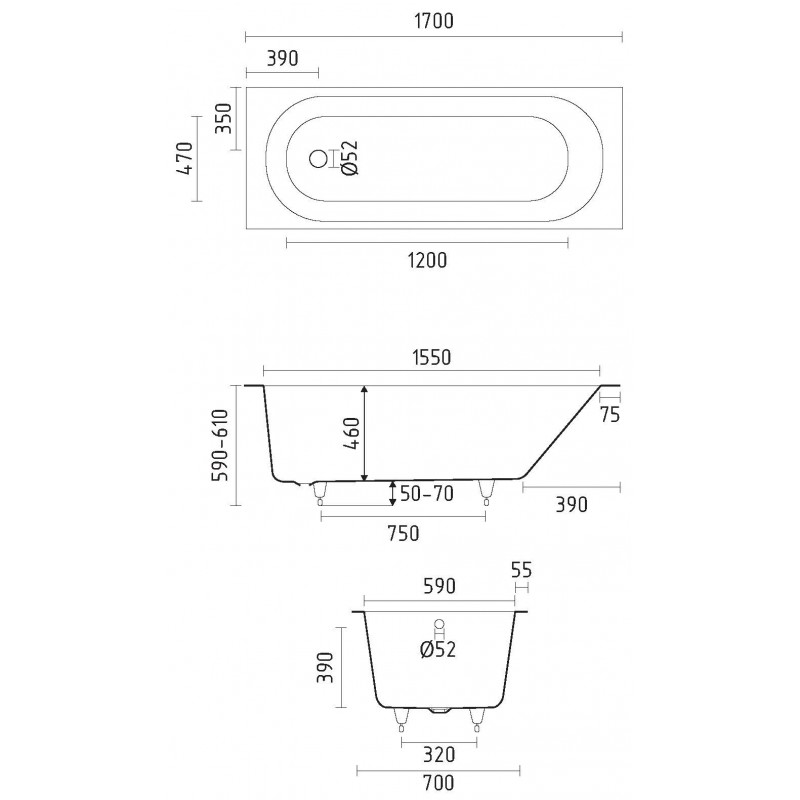 CRONO EDGE Ванна 170x80 встраиваемая с овальной чашей, белый глянцевый BT-CRNEG-17080-NOF-WG